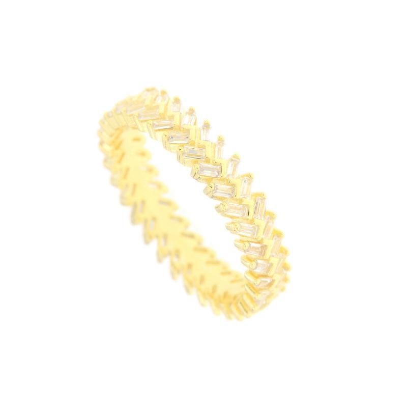 Anello in argento dorato e zirconi, veretta spina di pesce
