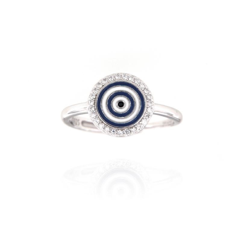 Anello in argento e zirconi occhio greco