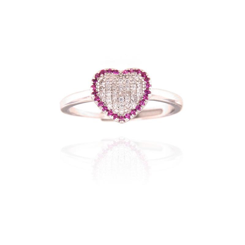 Anello in argento e zirconi rosso rubino cuore