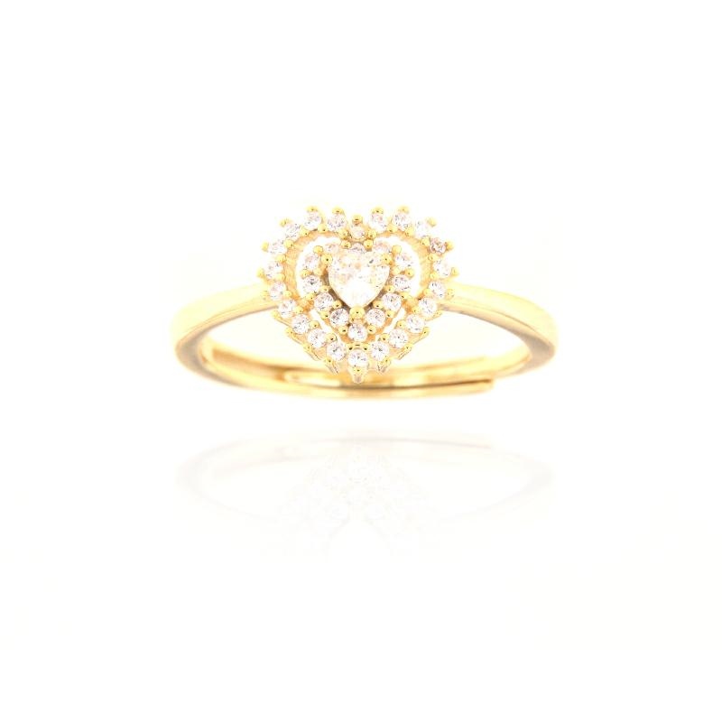 Anello in argento dorato e zirconi cuore
