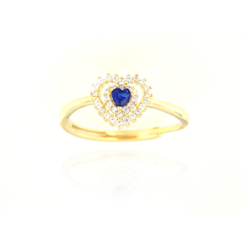 Anello in argento dorato e zirconi cuore blu zaffiro