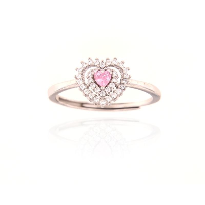 Anello in argento e zirconi cuore rosa