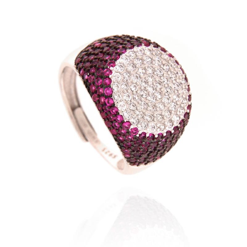 Anello chevalier in argento e zirconi rosso rubino