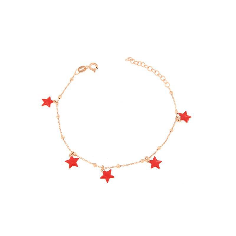 Bracciale in argento rosè stelle smaltate rosse