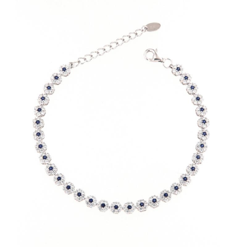 Bracciale in argento e zirconi fiori blu zaffiro