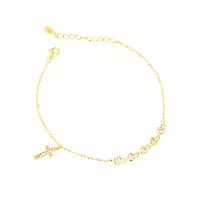 Bracciale in argento dorato e zirconi croce