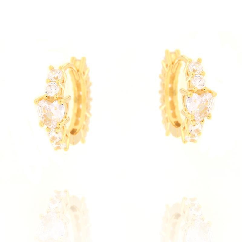 Orecchini a cerchietto in argento dorato e zirconi cuore