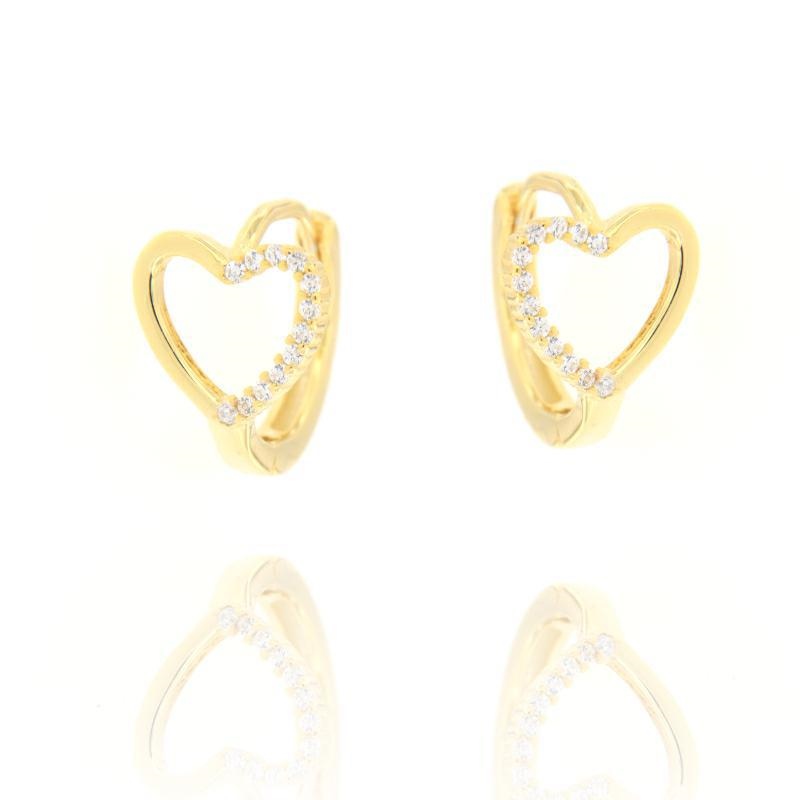 Orecchini a cerchio in argento dorato e zirconi cuore