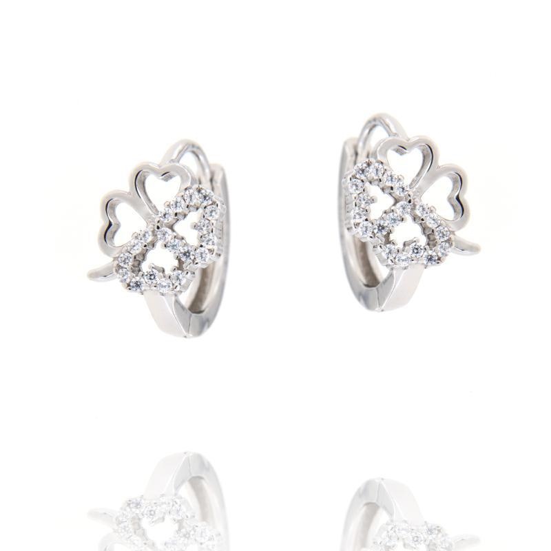 Orecchini a cerchio in argento e zirconi quadrifoglio
