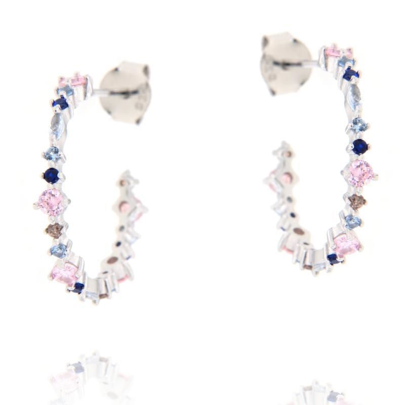 Orecchini a cerchio in argento e zirconi rainbow pastello
