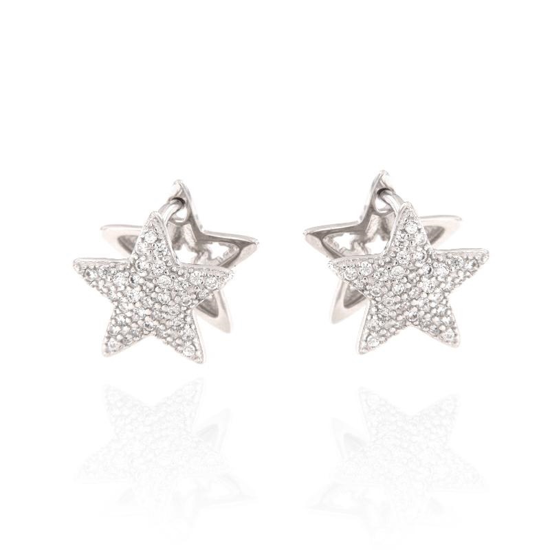 Orecchini chiusura baionetta in argento e zirconi stella