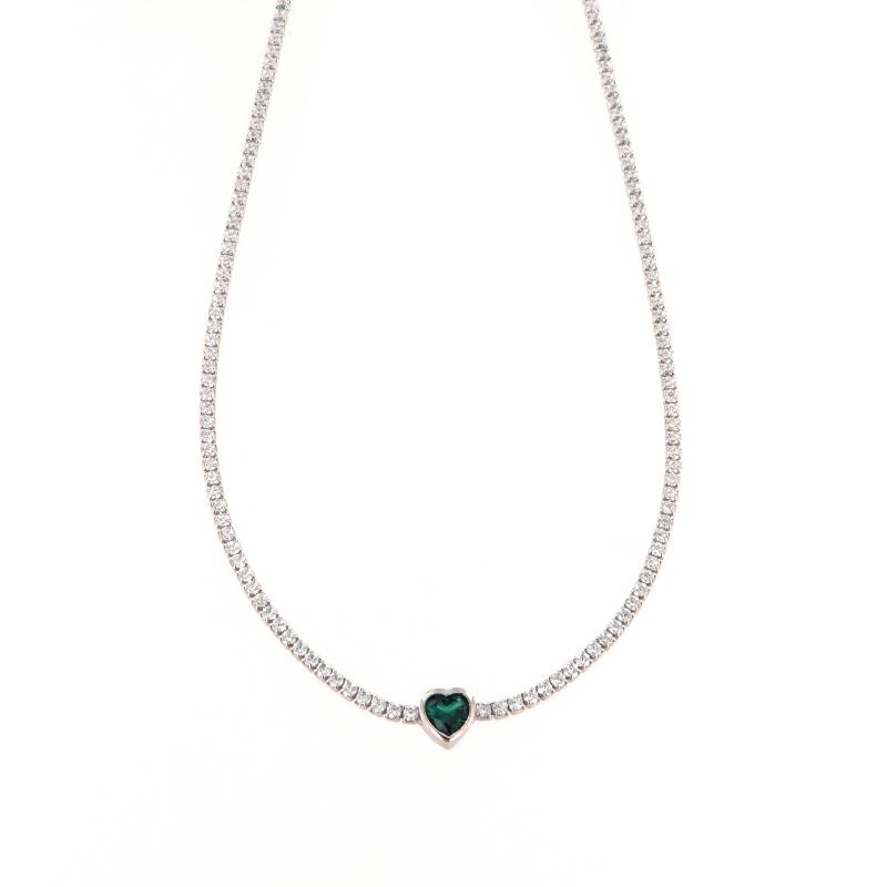 Collier in argento e zirconi cuore verde smeraldo