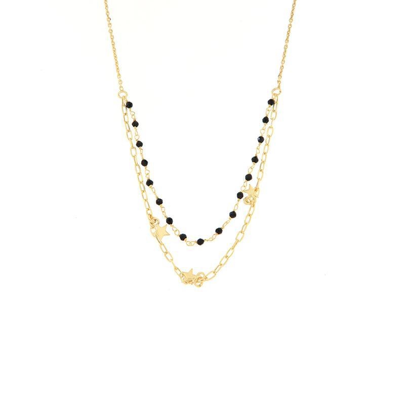 Collier doppio in argento dorato, palline nere e stelle