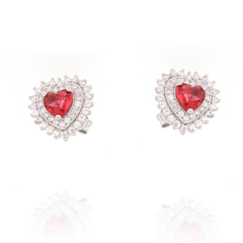 Orecchini in argento e zirconi rosso rubino cuore