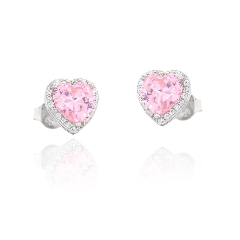 Orecchini a cuore in argento kate con pietra rosa e zirconi bianchi