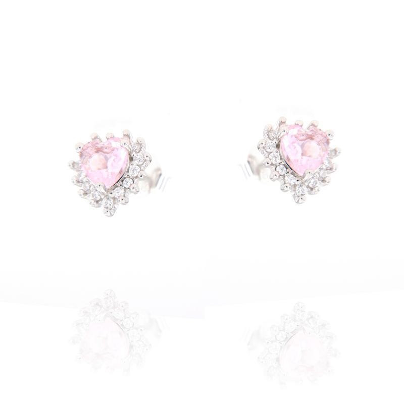 Orecchini in argento e zirconi cuore rosa