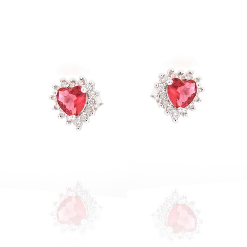 Orecchini in argento e zirconi cuore rosso rubino