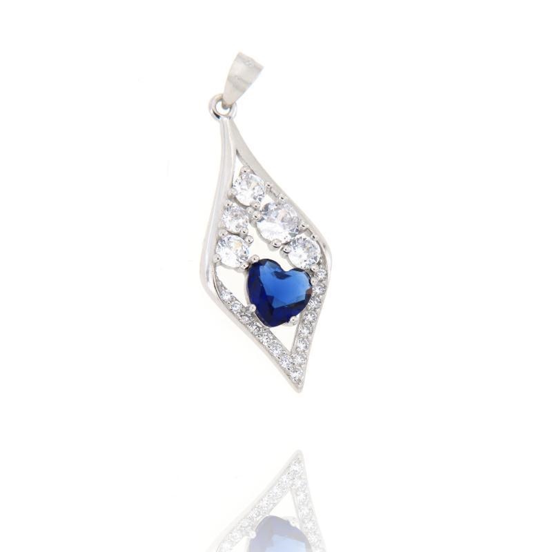 Ciondolo in argento e zirconi cuore blu zaffiro