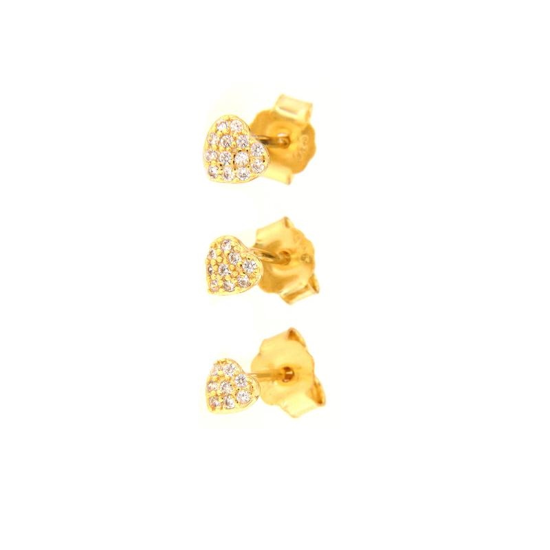 Orecchini a tris in argento dorato e zirconi cuori