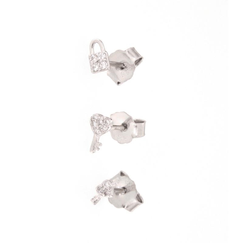 Orecchini a tris in argento e zirconi lucchetto chiave cuore