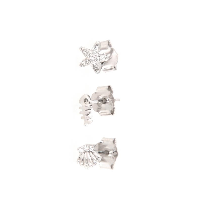 Orecchini a tris in argento e zirconi stella marina lisca conchiglia