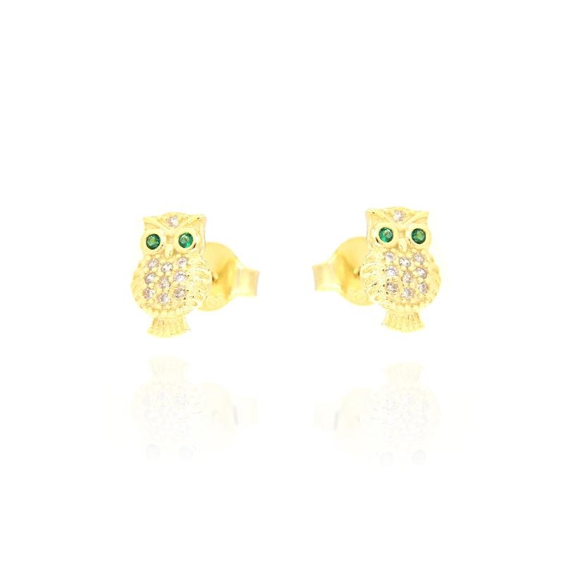 Orecchini in argento dorato e zirconi gufo