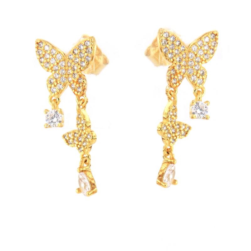 Orecchini in argento dorato e zirconi farfalla