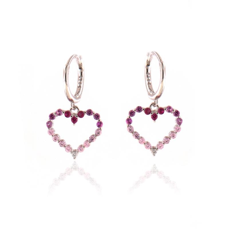 Orecchini a cerchietto in argento e zirconi cuore rosso rubino