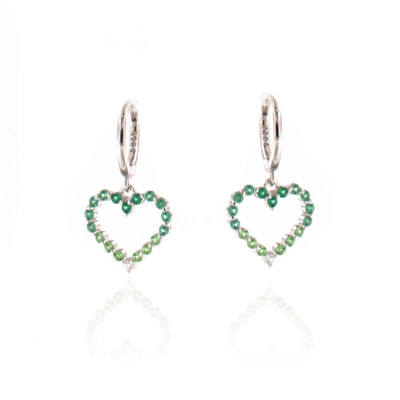 Orecchini a cerchietto in argento e zirconi cuore verde smeraldo