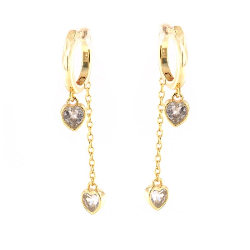 Orecchini a cerchietto in argento dorato e zirconi cuori