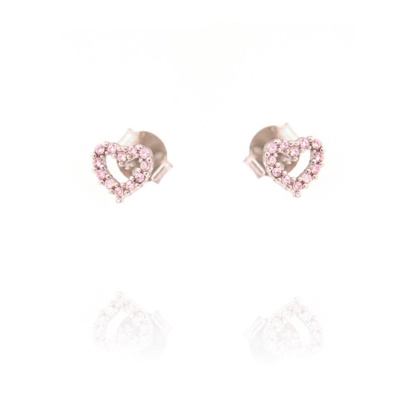 Orecchini in argento e zirconi cuore rosa
