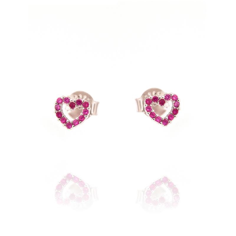 Orecchini in argento e zirconi cuore rosso rubino