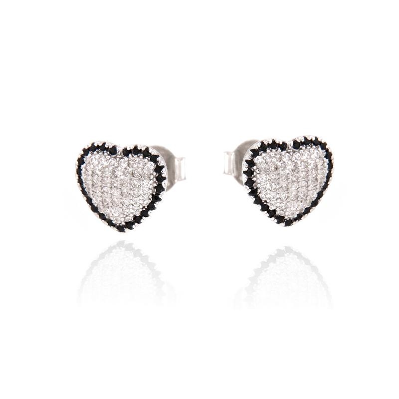 Orecchini in argento e zirconi cuori neri