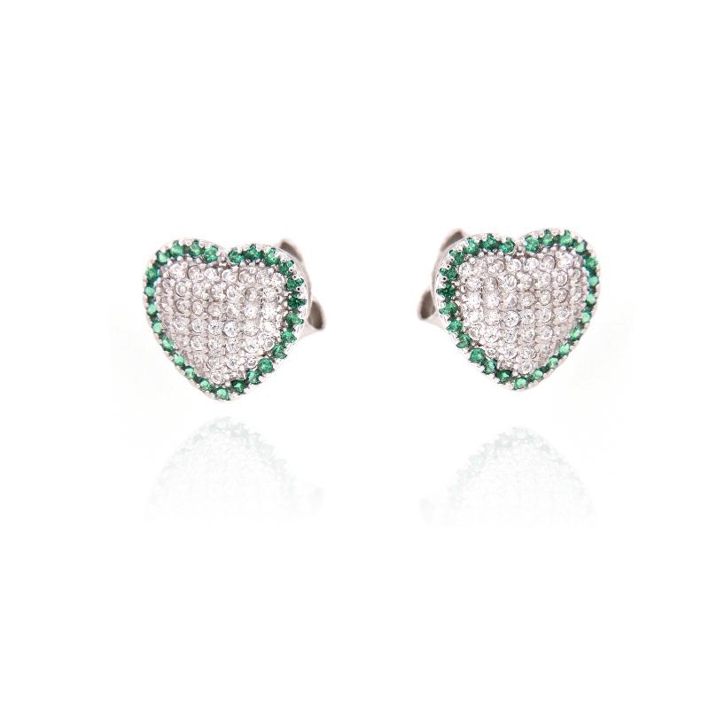 Orecchini in argento e zirconi cuori verde smeraldo