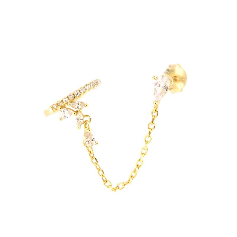 Mono orecchino ear cuff in argento dorato e zirconi