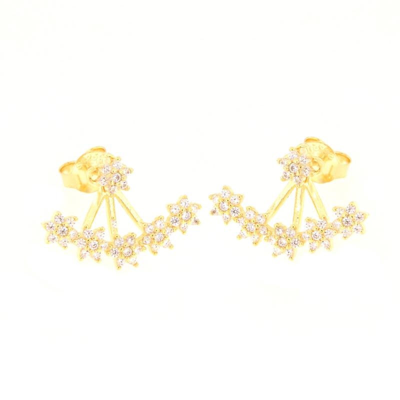 Orecchini doppi in argento dorato e zirconi fiori