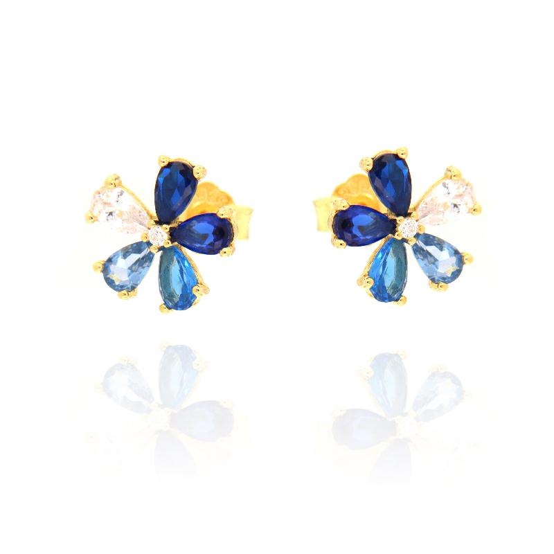Orecchini in argento dorato e zirconi fiori blu zaffiro