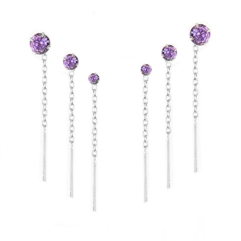 Orecchini passanti in argento a tris punto luce lilla