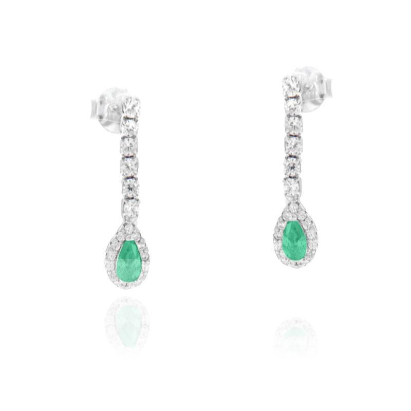 Orecchini in argento e zirconi pendenti goccia verde smeraldo