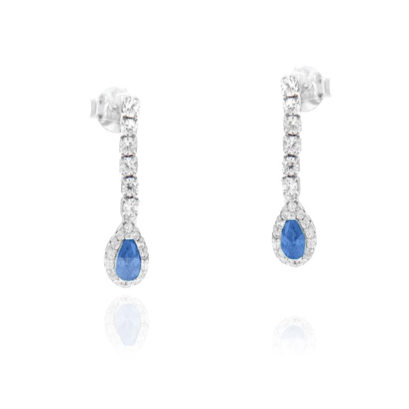 Orecchini in argento e zirconi pendenti goccia blu zaffiro