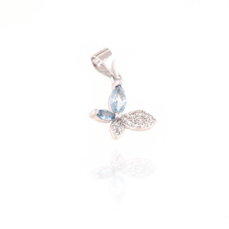 Ciondolo in argento e zirconi farfalla acquamarina