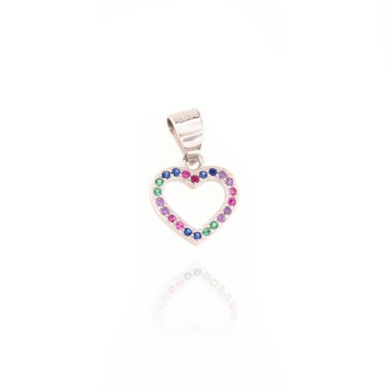 Ciondolo in argento e zirconi rainbow cuore
