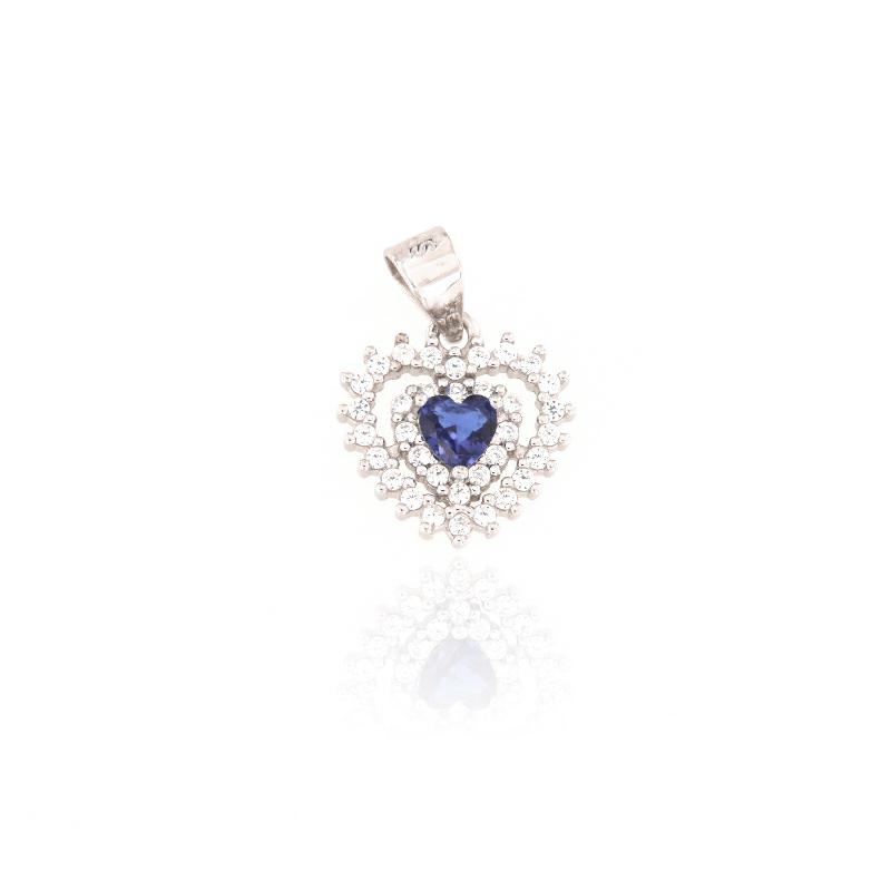 Ciondolo in argento e zirconi cuore blu zaffiro