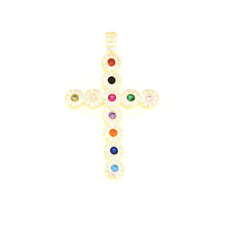 Ciondolo in argento dorato e zirconi rainbow croce