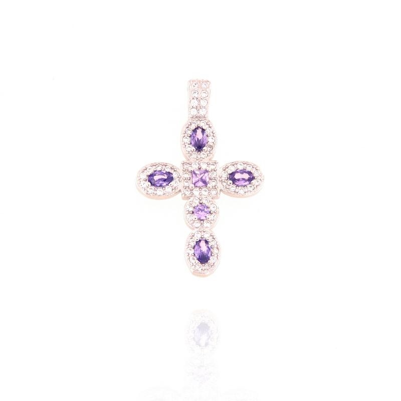 Ciondolo in argento e zirconi lilla croce