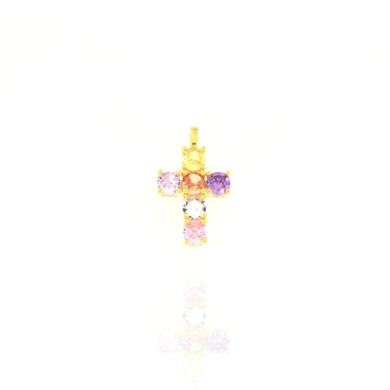 Ciondolo in argento dorato e zirconi rainbow croce