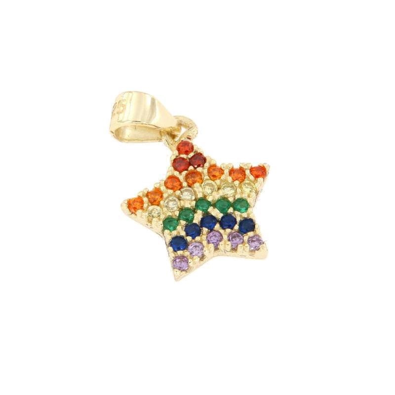 Ciondolo in argento dorato Stella con pietre colorate rainbow