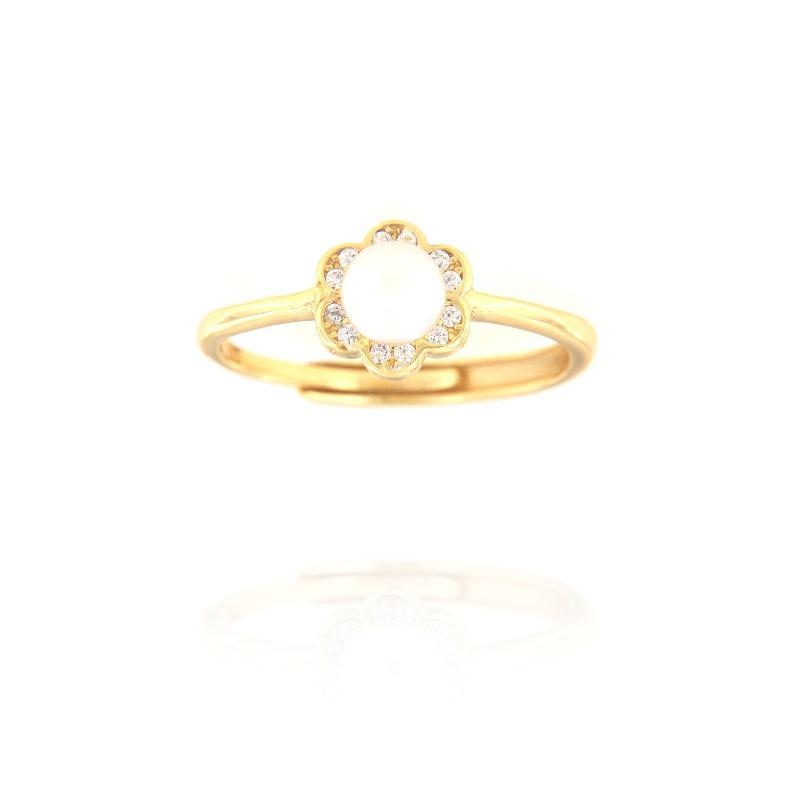 Anello in argento dorato e zirconi perla di fiume fiore