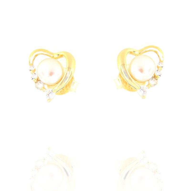 Orecchini in argento dorato e zirconi perla di fiume cuore