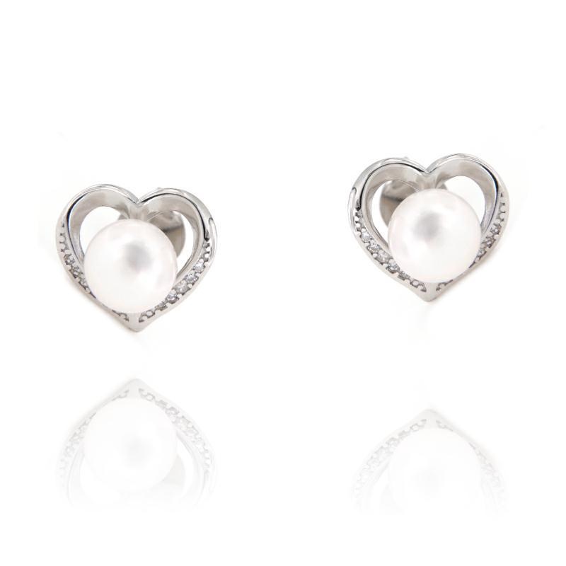 Orecchini in argento e zirconi cuore perla di fiume
